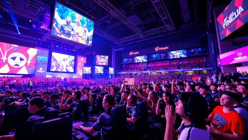Large Crowd Spectating Esports Tournament with Giant Screens and ...