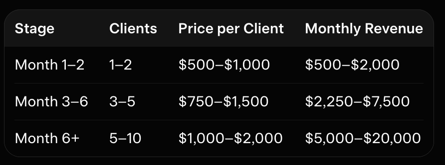 Close the First Client: Convert early replies into paying clients at $500–$1,000/month.