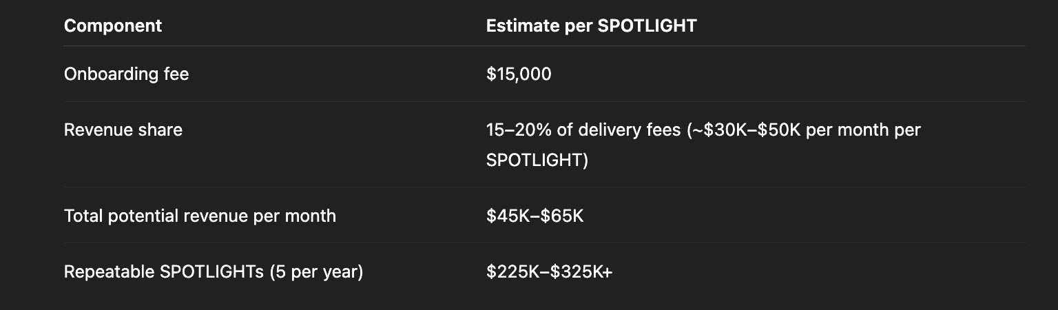 In short: if you’ve run or know how to run an efficient delivery operation, this SPOTLIGHT lets you package it, execute it, and get paid for it repeatedly.